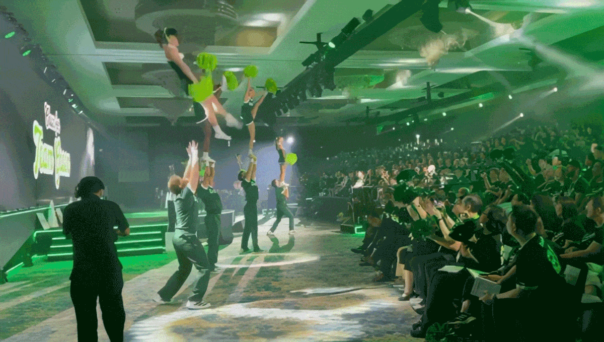 Seeing the final animation launch on that massive screen alongside a high-octane live performance from cheerleaders brought an incredible level of energy to the room. The scale of the visuals paired with the live choreography created a seamless, high-impact experience that really set the tone for the entire conference.